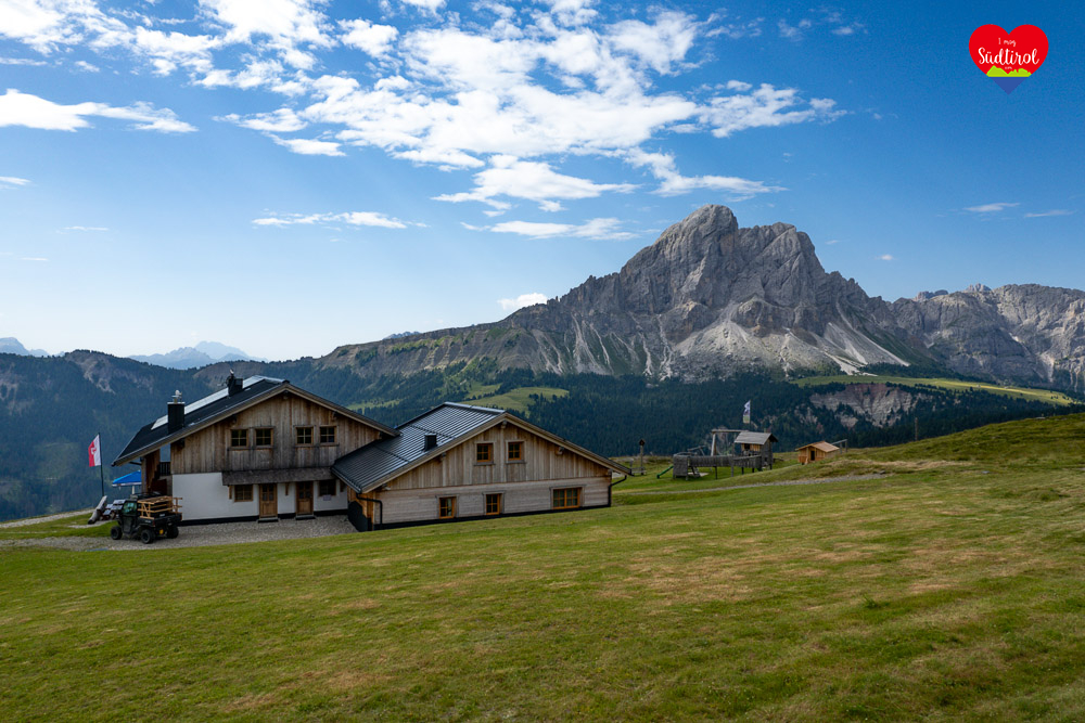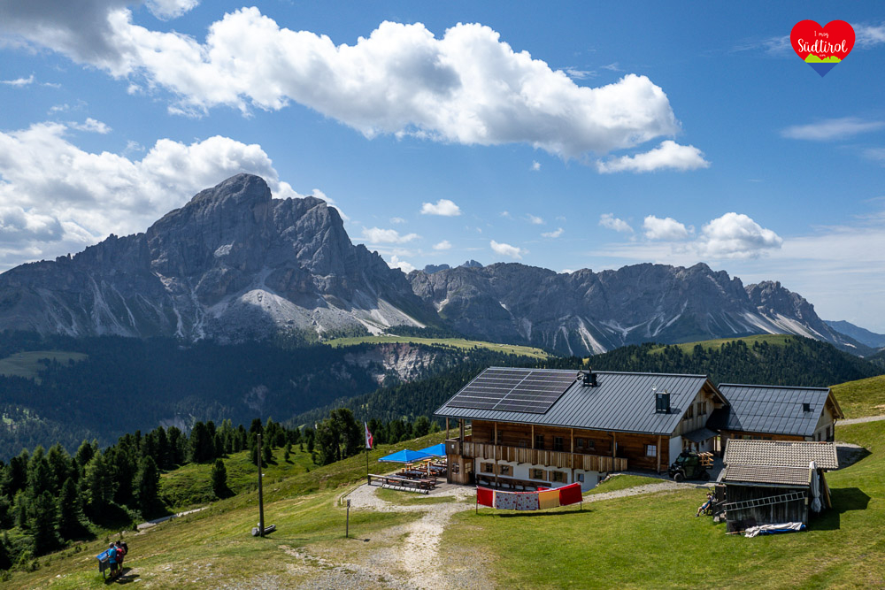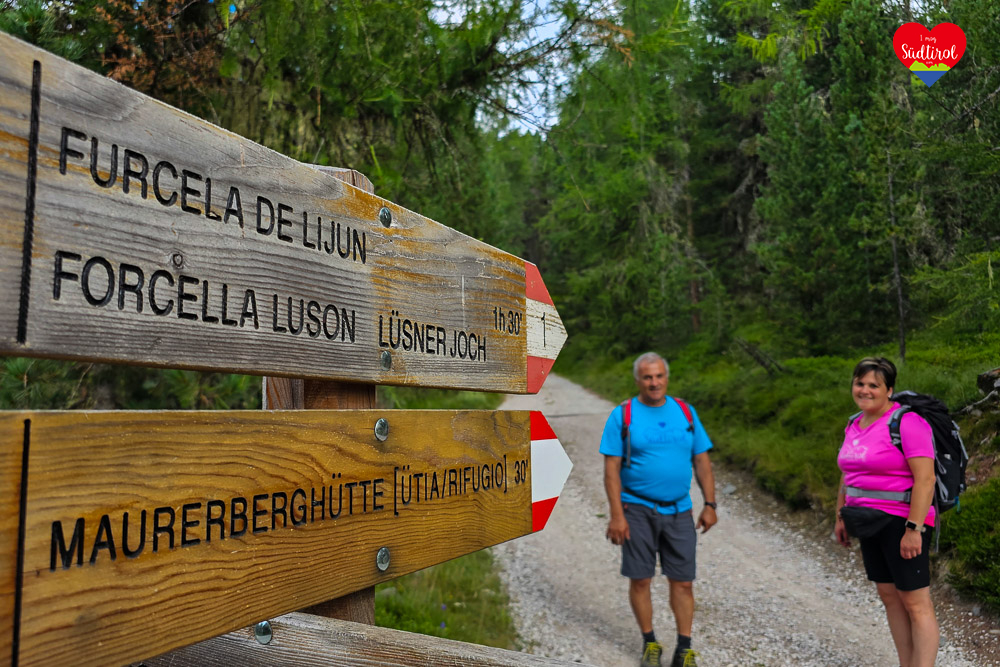 Vom Parkplatz „Pe de Börz Maurerberg“ führt der Wanderweg entlang einer Forststraße der Beschilderung „Maurerberghütte“ folgend durch den wunderschönen Wald hinauf zur Maurerberghütte. Bereits unterhalb der Hütte genießen Sie einen atemberaubenden Blick auf die umliegenden Dolomitengipfel, darunter der imposante Peitlerkofel und die Aferer Geisler.