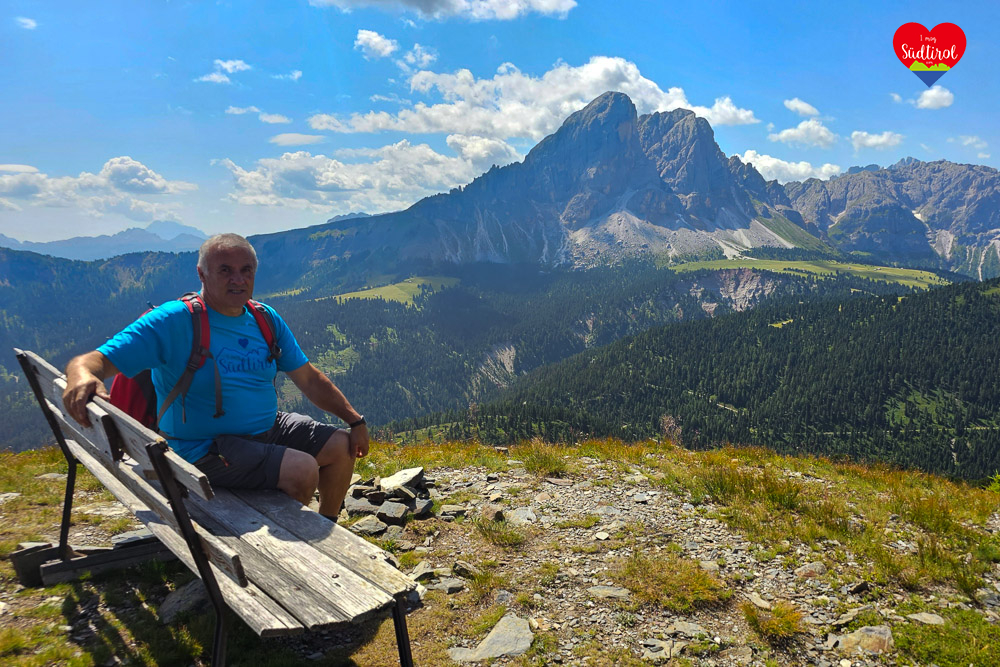 Der Maurerberg, auf 2.325 Metern Höhe in den Südtiroler Dolomiten, liegt unweit des Würzjoch Passes, der das Gadertal mit Lüsen verbindet. Diese leichte Gipfelwanderung gilt als Geheimtipp und bietet ein atemberaubendes 360-Grad-Panorama auf die umliegenden Dolomitengipfel, die Rieserferner Gruppe und die Pfunderer Berge.