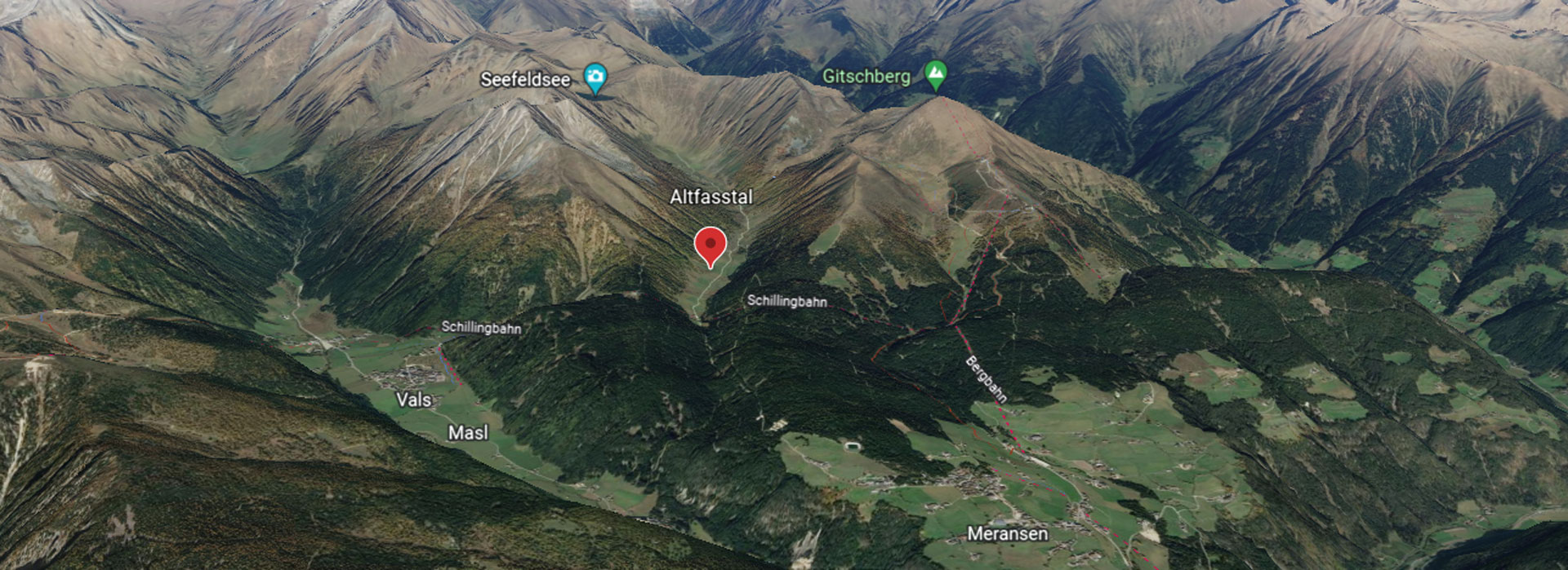 Das malerische Altfasstal liegt oberhalb von Meransen. Meransen ist ein Dorf in Südtirol und gehört zur Gemeinde Mühlbach und hat circa 850 Einwohner. Das Altfasstal liegt somit am Eingang ins Pustertal und gehört zur Ferienregion Gitschberg – Jochtal. Das Tal kann man das ganze Jahr durchwandern, aber im Winter ist nur ein Teilstück geöffnet.