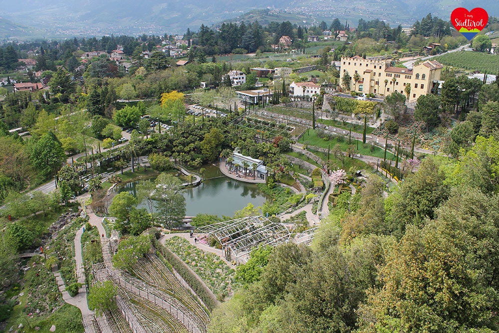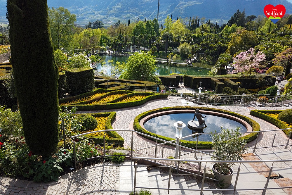Das Schloss befindet sich östlich der Kurstadt Meran. Die Gärten wurden 2001 eröffnet und sind 12 ha groß, 7 km Wege könnte man begehen. In Terrassenform angelegt, zog der Garten uns in seinen Bann.