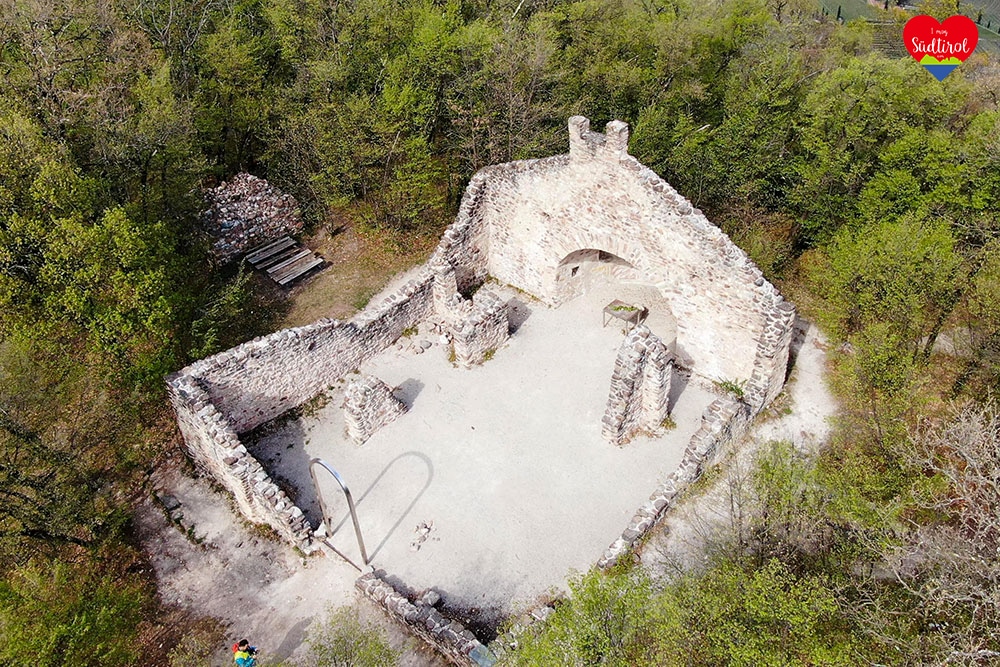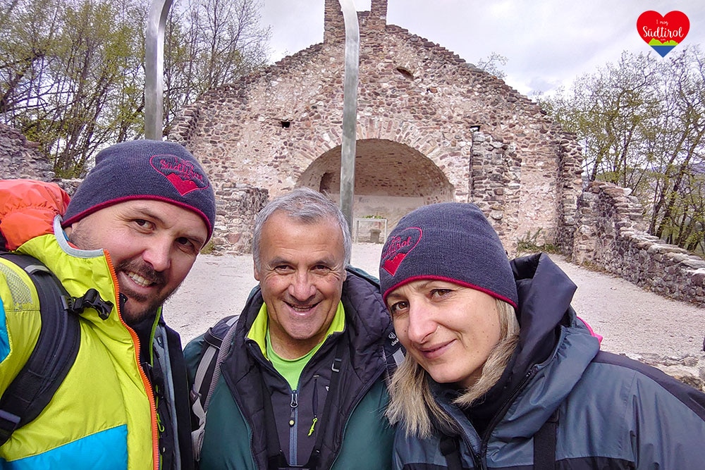 Der letzte Besinnungspunkt (Liebe) war die St.Peter Basilika in Altenburg. Es ist eine Kirchenruine, die wohl wahrscheinlich älteste Kirchenruine Tirols. Hier machten wir eine Pause und stärkten uns.  Dann machte ich noch einige Bilder und wir marschierten über die 37 Meter lange Friedensbrücke. Nun erreichten wir nach kurzem Anstieg das Dorf Altenburg. Dort genossen wir noch einmal den herrlichen Blick auf das untere Etschtal und den Kalterer See. Zum Abschluss schauten wir uns noch die Kirche St. Vigil in Altenburg an. Sie ist sehr beeindruckend.