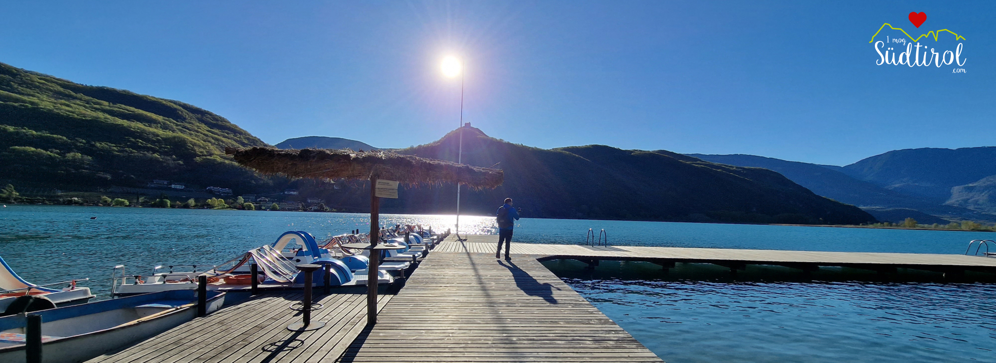 Der Kalterer See, mit einer Länge von 1,8 km, einer Breite von 0,9 km und einer maximalen Tiefe von 5,6 m, liegt auf einer Höhe von 216 m und zählt zu den größten Seen Südtirols. Er ist bekannt als einer der wärmsten Badeseen im Alpenraum