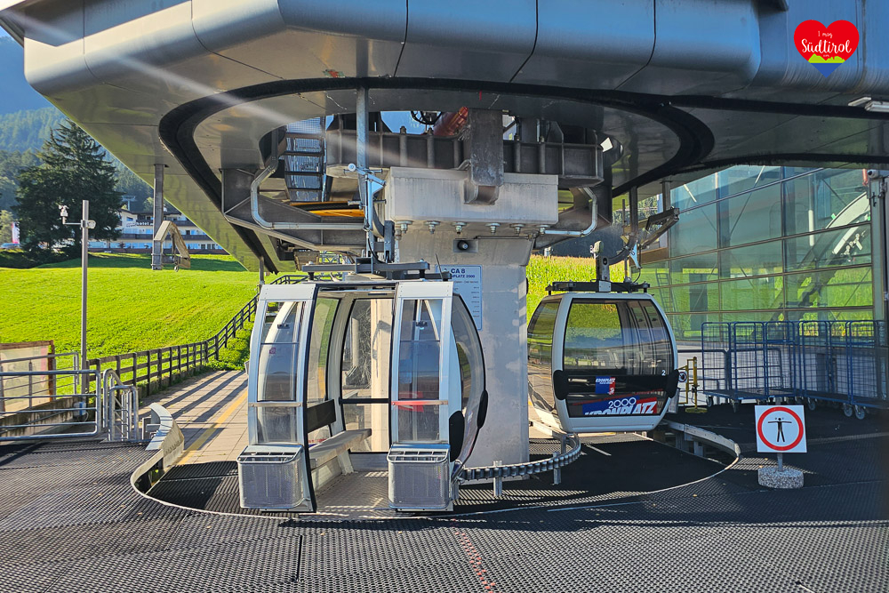 Über den Brenner erreichen Sie den Parkplatz der Talstation in Reischach bei Bruneck, indem Sie auf der A22 bis zur Ausfahrt Brixen fahren, dann der Pustertaler Straße (SS49) in Richtung Bruneck folgen und schließlich den Schildern zur Talstation Kronplatz in Reischach folgen. Aus dem Pustertal kommend, nehmen Sie die SS49 in Richtung Bruneck, fahren durch die Stadt und folgen ebenfalls den Schildern zur Talstation in Reischach.