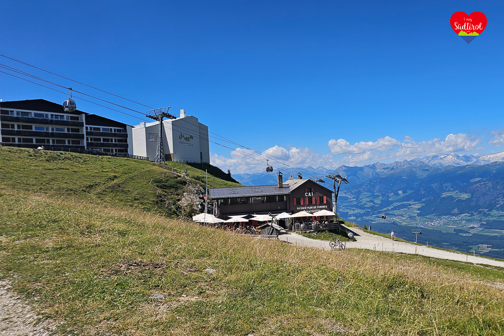In der CAI Hütte wurden wir herzlich empfangen. Auf der gemütlichen Sonnenterrasse bestellten wir „Hirten Maccheroni“, die hervorragend schmeckten. Nach dieser Stärkung nahmen wir uns noch die Zeit, die zwei Museen am Kronplatz zu besuchen: das MMM (Messner Mountain Museum) und das LUMEN, welches sich der Bergfotografie widmet. Zum Abschluss wanderten wir die letzten Meter hinauf zur Bergstation der Kabinenbahn, wo unsere Wanderung endete. Mit der Bahn fuhren wir zurück nach Reischach und machten uns schließlich mit einem sehr guten Gefühl auf den Heimweg.