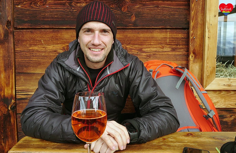 Gegen Mittag waren wir an der Moarhofalm angekommen. Wir stärkten uns mit einer Südtiroler Jause: Speck & Almkäse, Kaminwurzen usw. Wir genossen die gemütliche Atmosphäre und hatten Lust auf ein Kartenspiel. Das war sehr angenehm und lustig. Später schoss ich einige Bilder und Videos. Bevor wir wieder starteten, versuchte ich noch mein Glück mit der Ziehharmonika des Hüttenwirtes. Ich spielte ein „Ständchen“ und erfreute damit die Herzen einiger Gäste.