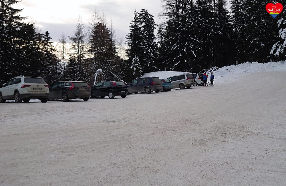 An einem Wintertag sind mein Freund Armin und ich zum Parkplatz „Gelenke“ gefahren. Dort führt eine ideale Familienrodelbahn zur Alm. Wir bereiteten uns aber für den Ausflug mit den Tourenskiern vor und los gings!