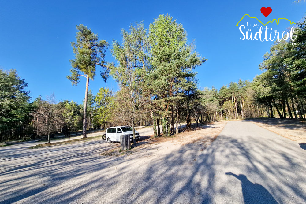 Rund um den Montiggler See stehen mehrere Parkplätze zur Verfügung. Direkt am Seezugang gibt es einen Parkplatz, der jedoch pünktlich am Morgen beansprucht wird. Eine weitere Option ist der Parkplatz oberhalb des Montiggler Sees, der nur 5 Gehminuten entfernt ist. Dieser Parkplatz bietet ausreichend Platz, ist jedoch kostenpflichtig.