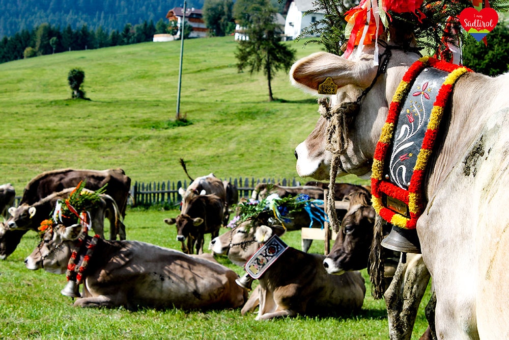 Almabtrieb in Rodeneck: Alle Jahre wird von der örtlichen Bauernjugend der traditionelle Almabtrieb im Herbst gefeiert. Besonderes daran sind die geschmückten Tiere, die von der Alm heimkommen und die gastronomischen Köstlichkeiten.