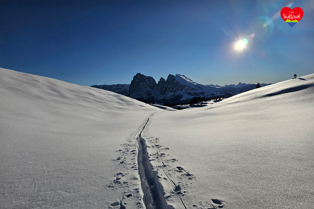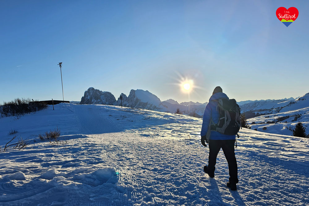 Seiser Alm Wandern: Im Sommer und Winter eröffnen sich zahlreiche Möglichkeiten für Ausflüge und Wanderungen. Die atemberaubende Aussicht und die erstklassigen Wanderwege erstrecken sich über 450 Kilometer. Auf der Seiser Alm erwartet Sie eine bezaubernde Landschaft und eine Atmosphäre der Stille. Ein Netz von 60 Kilometern präparierter Winterwanderwege führt zu den schönsten Aussichtspunkten, von denen aus Sie die majestätischen Dolomiten bewundern können. Alle Winterwanderwege sind auch für Schneeschuhwanderungen geeignet. Es gibt eine Vielzahl von Spaziergängen und anspruchsvollen Wanderungen im Schnee, die nur geringe Höhenunterschiede aufweisen.