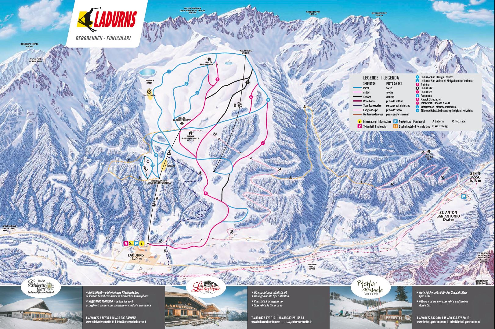 Als Teil des Skiverbunds Ortler Skiarena ist das Skigebiet Ladurns in Südtirol Teil eines Verbunds von 15 Skigebieten. Zusammen bieten sie insgesamt rund 400 Pistenkilometer, die alle mit einem einzigen Skipass zugänglich sind.