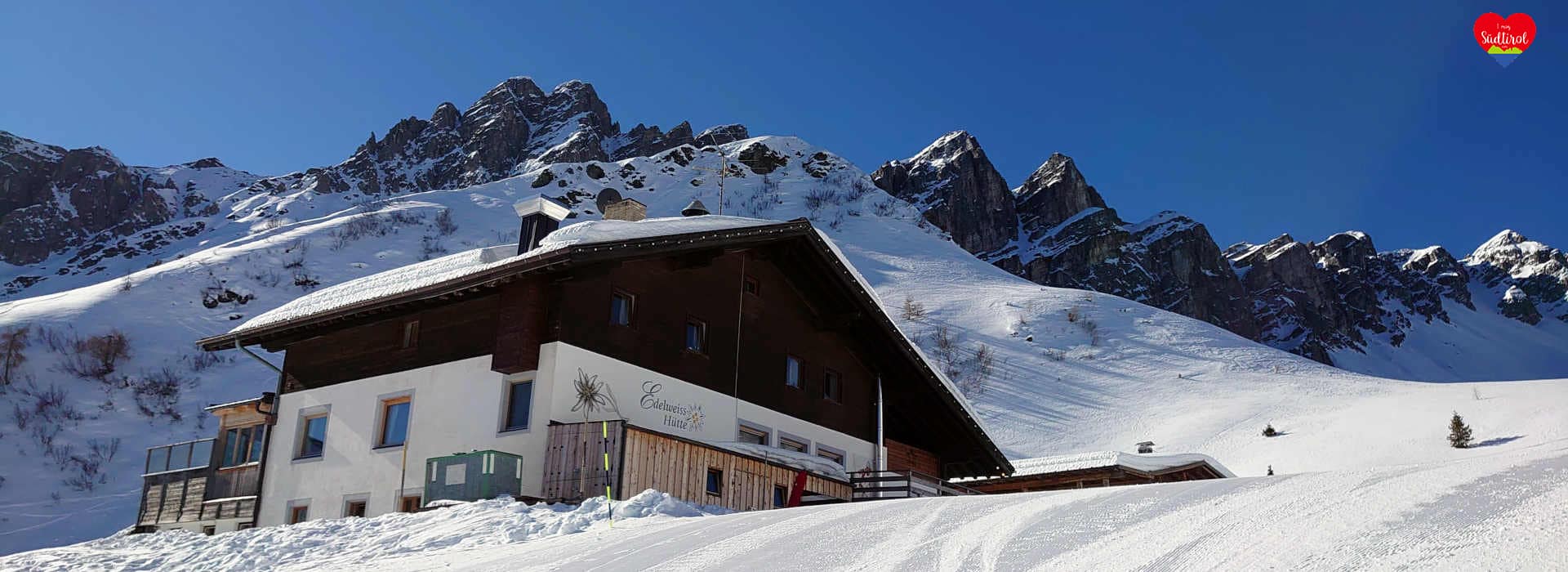 Edelweisshütte: (1.982m) | Almhütte | Frühstück | Unterkunftsmöglichkeit | Tiroler Stubn | Après Ski | Schöne Sonnenterrasse | Südtiroler Marende | Hausmannskost | Tel: +39 0472 671705