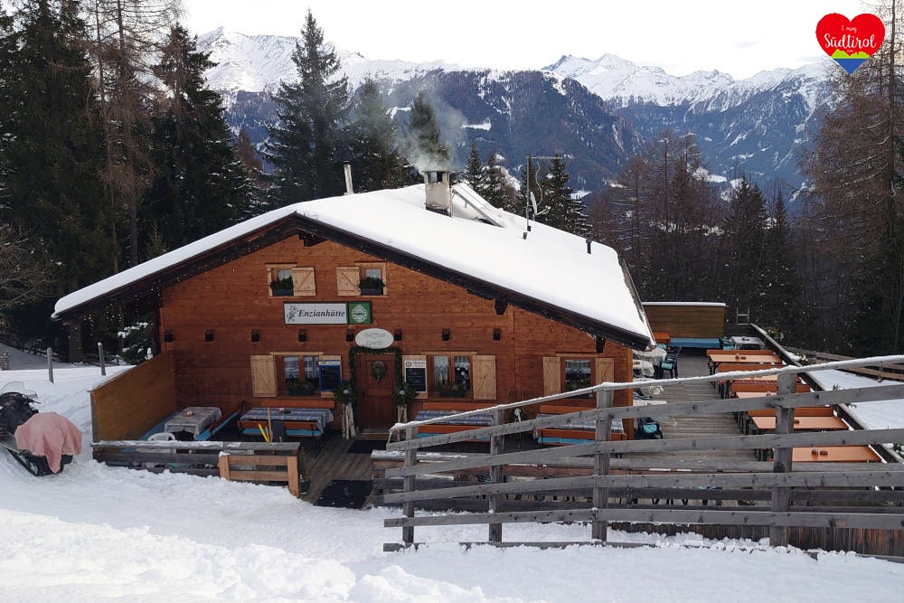 Die Enzianhütte befindet sich auf 1600 m Höhe und besticht durch ihre urige Atmosphäre sowie eine kleine, aber wunderschöne Sonnenterrasse. Die Lage ist direkt am Einstieg des Stockliftes, der von einem 4er-Sessellift bedient WIRD, und somit ist die Hütte direkt an der Skipiste gelegen. Die Küche bietet traditionelle Gerichte aus Südtirol und das Ambiente ist einfach großartig.