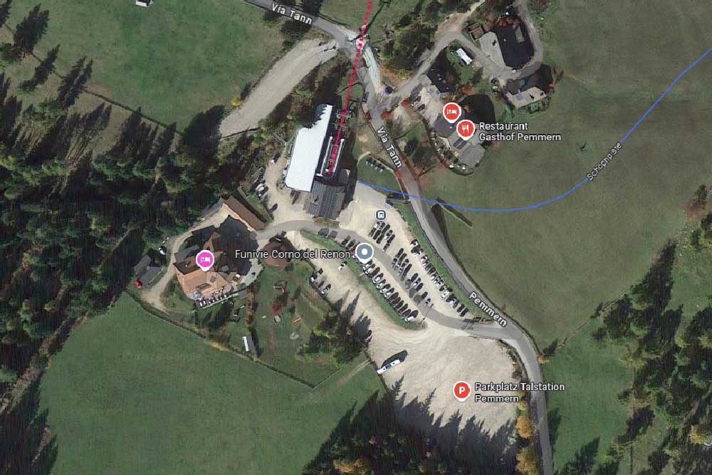 Fahren Sie von Bozen aus auf der SS12 Richtung Norden und biegen Sie dann auf die SP22 in Richtung Ritten ab. Folgen Sie der Straße durch Oberbozen bis nach Pemmern und biegen Sie dort links zur Talstation Rittner Horn ab. Der Parkplatz befindet sich direkt an der Talstation in der Tannstraße 30