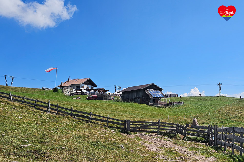 Wir, das Imog Südtirol Team, nahmen die Rittner Horn Bahn vom Parkplatz aus und erreichten entspannt die Schwarzseespitze, wo es auch eine Einkehrmöglichkeit gibt. Die Bahn ist sogar für Fahrten mit dem Kinderwagen geeignet: Von dort aus genossen wir die beeindruckende Aussicht auf die umliegenden Berglandschaften sowie das majestätische Rittner Horn, das eine Höhe von 2.260 Metern über dem Meeresspiegel erreicht.