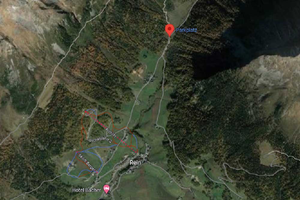 von Bruneck zu erreichen, fahren Sie auf der SS621 in Richtung Ahrntal. Durchqueren Sie die Dörfer Gais und Sand in Taufers. Kurz hinter Sand in Taufers nehmen Sie die Abzweigung nach Links und folgen der Beschilderung nach Rein in Taufers. Nach rund 6 Kilometern erreichen Sie Rein in Taufers und folgen der Straße weiter bis zum Parkplatz Knuttenalm.