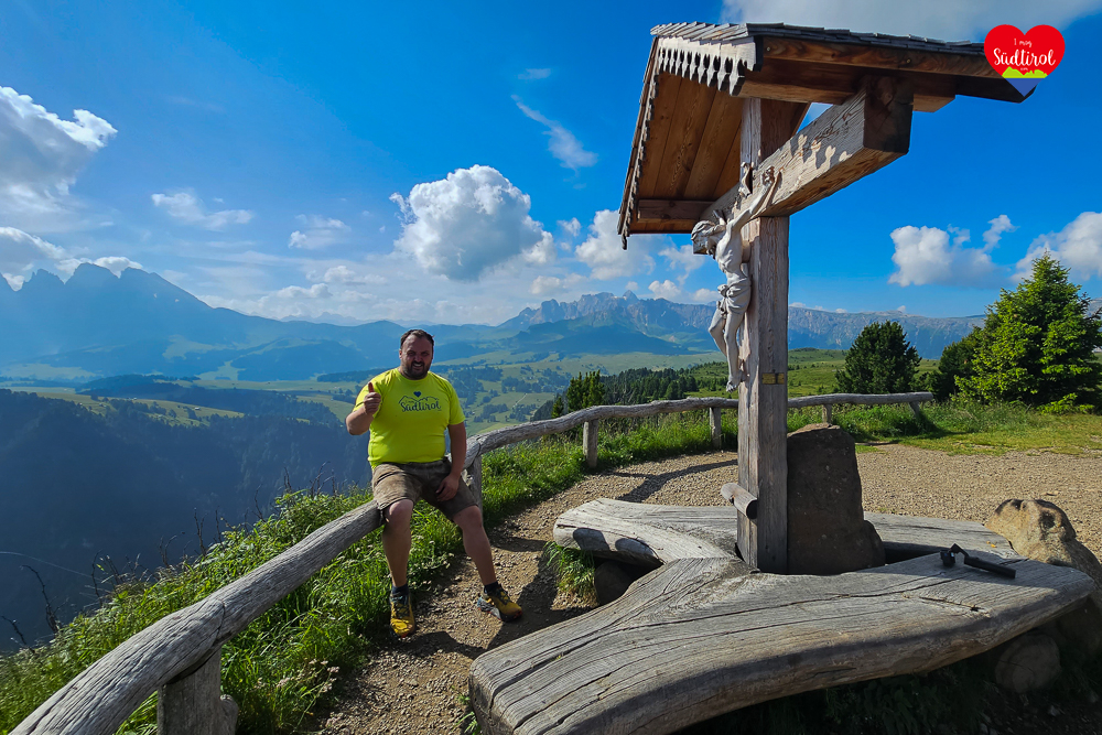 Die Wanderung startet in St. Ulrich in Gröden an der Bergstation der Panorama-Standseilbahn, die Sie in nur 8 Minuten direkt auf die Raschötzer Alm bringt. Auf der Rundwanderung besuchen Sie die denkmalgeschützte Heilig-Kreuz-Kapelle im Naturpark Puez-Geisler und genießen vom Gipfelkreuz auf 2.281 m Höhe einen beeindruckenden 360° Panoramablick.