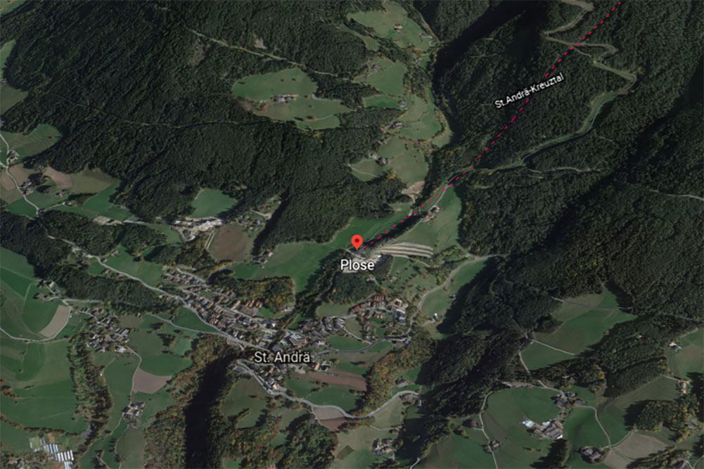Mit dem Auto kann man bis nach Kreuztal fahren, nähe der Bergstation der Plosebahn. Dort finden Sie auch einen großen Parkplatz (teils kostenpflichtig).