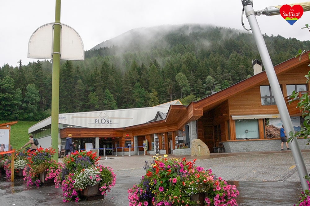 Wir parkten unser Auto am großen Parkplatz vor der Talstation der Plose Seilbahn. Wir waren die ersten Gäste, denn es waren kaum Autos da-Das Wetter war nicht bewölkt, aber etwas trüb. Eine ideale Luft zum Wandern. Während ich den Rucksack und Camara vorbereitete, kaufte mein Vater die Liftkarten (Berg und Talfahrt). Schließlich stiegen wir in die Gondel ein und starten los. Die Bahn war nicht mehr die neueste ab es funktionierte super und wir genossen die herrliche Aussicht auf den Brixner Talkessel. Schließlich erreichten wir die Bergstation der Plose Bahn. Frisch und munter verließen wir die Anlage und erblickten den großartigen Schriftzug „Plose“ dahinter, das Bergmassiv der Geislerspitzen. Es war wunderschön.