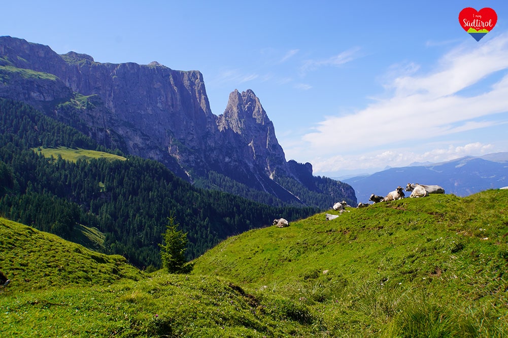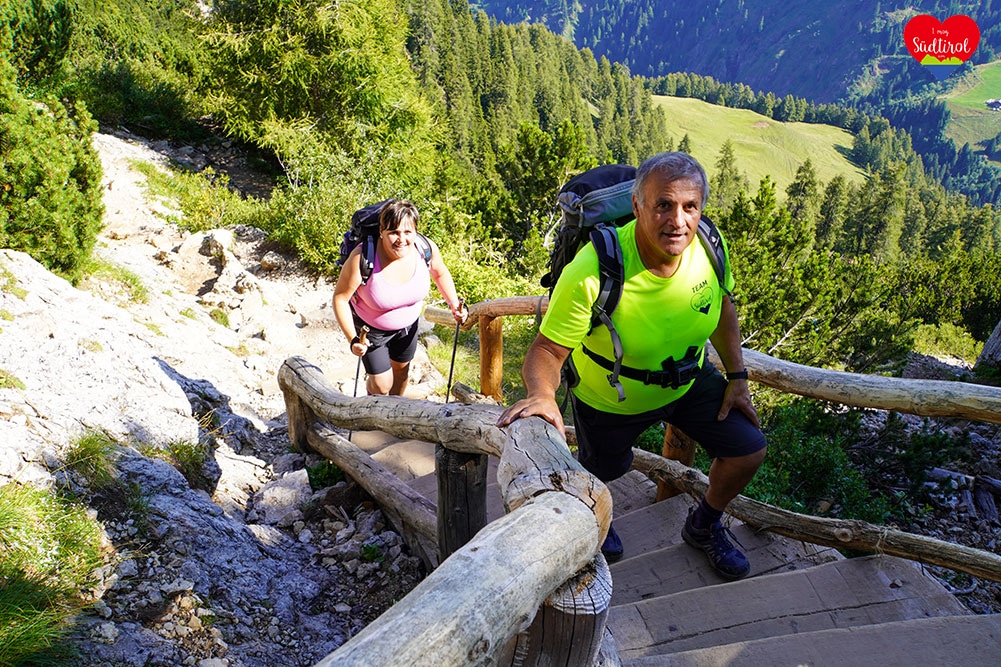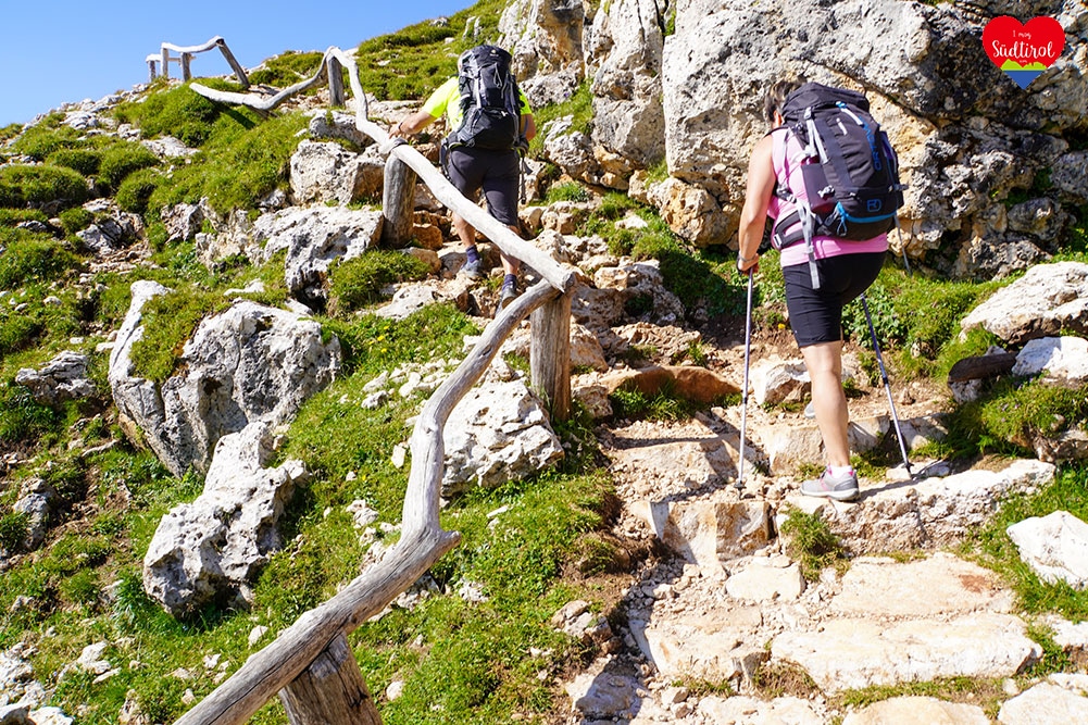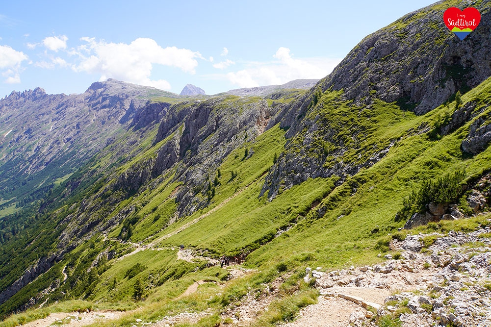 Man nimmt den Weg in Richtung Panorama weiter bis zur Saltner Schwaige und von da aus beginnt der Touristensteig direkt zu den Schlernhaus.