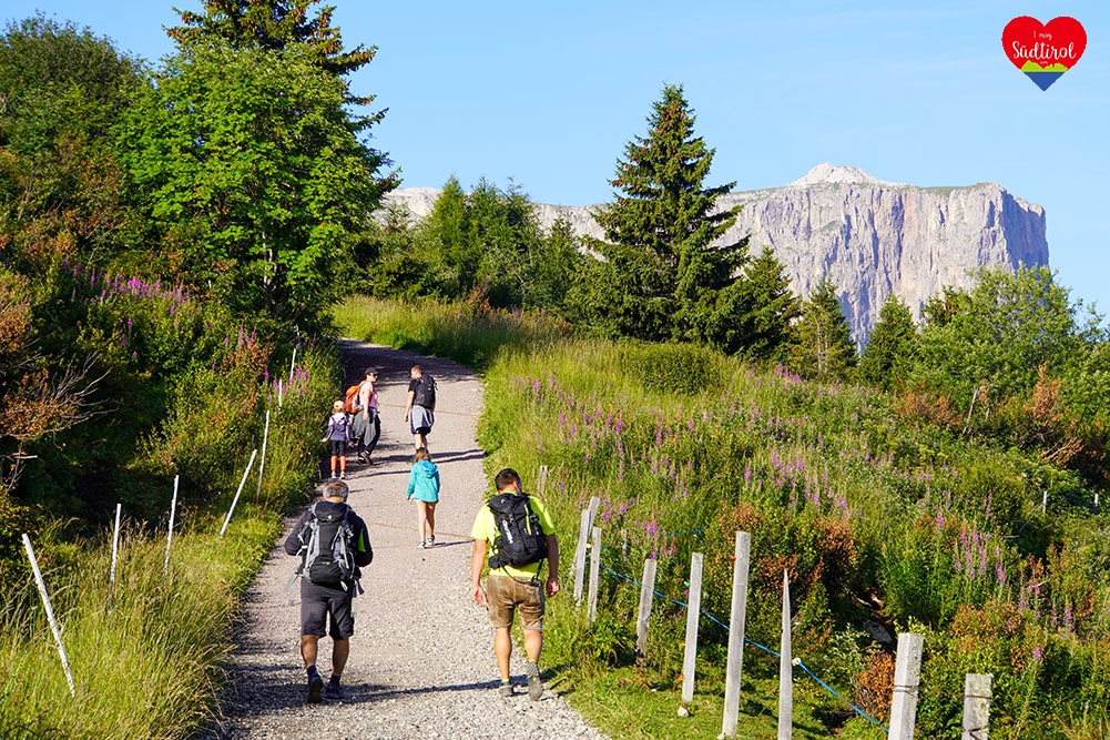 Viele Wanderungen auf der Seiser Alm sind abwechslungsreich, unschwierig und sehr beliebt. Sie führen über die östlichen Dolomiten über die Alm Flächen der Seiser Alm, dem Hochplateau des Schlern, mit einer großartigen Flora und Fauna.450 km Wanderwege bieten viel Abwechslung für jeden. Eine einfache Hüttentour, eine Wanderung je nach Jahreszeit bis zur Gipfeltour auf den Schlern, Rosengarten oder Lang -und Plattkofel.