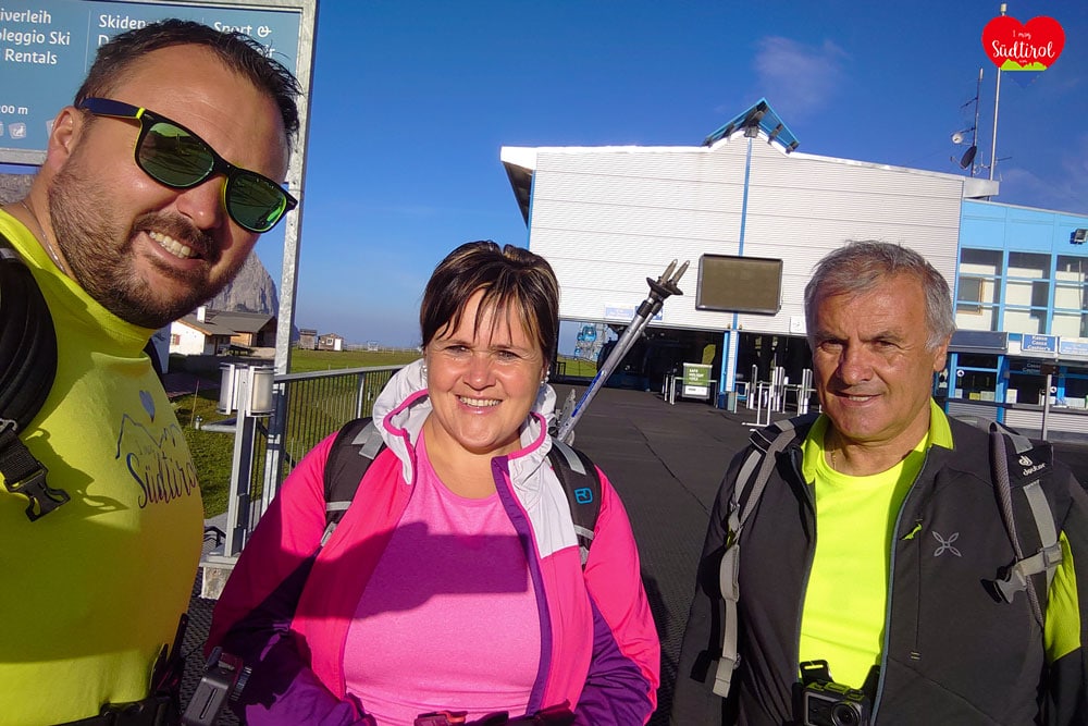 Nach der schmackhaften Stärkung hatten wir wieder Kraft und marschierten gleich los. Zunächst über die Forststraße, dann hinauf über den Feldweg und schließlich über den schönen Weg wieder zurück nach Compatsch. Angekommen in Compatsch besichtigten wir mit einem guten Gedanken die Franziskuskirche, besuchten unser Lieblingssportgeschäft „Sport Hans“ gleich neben der Kirche, tranken einen Espresso in der Bar Zentrale und spazierten die letzten Meter bis zur Bergstation der Seilbahn. Anschließend fuhren wir mit der Gondel hinunter. Wir gratulierten uns gegenseitig zu dieser außergewöhnlich schönen Tour uns machten uns auf den Heimweg.