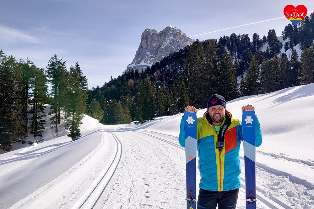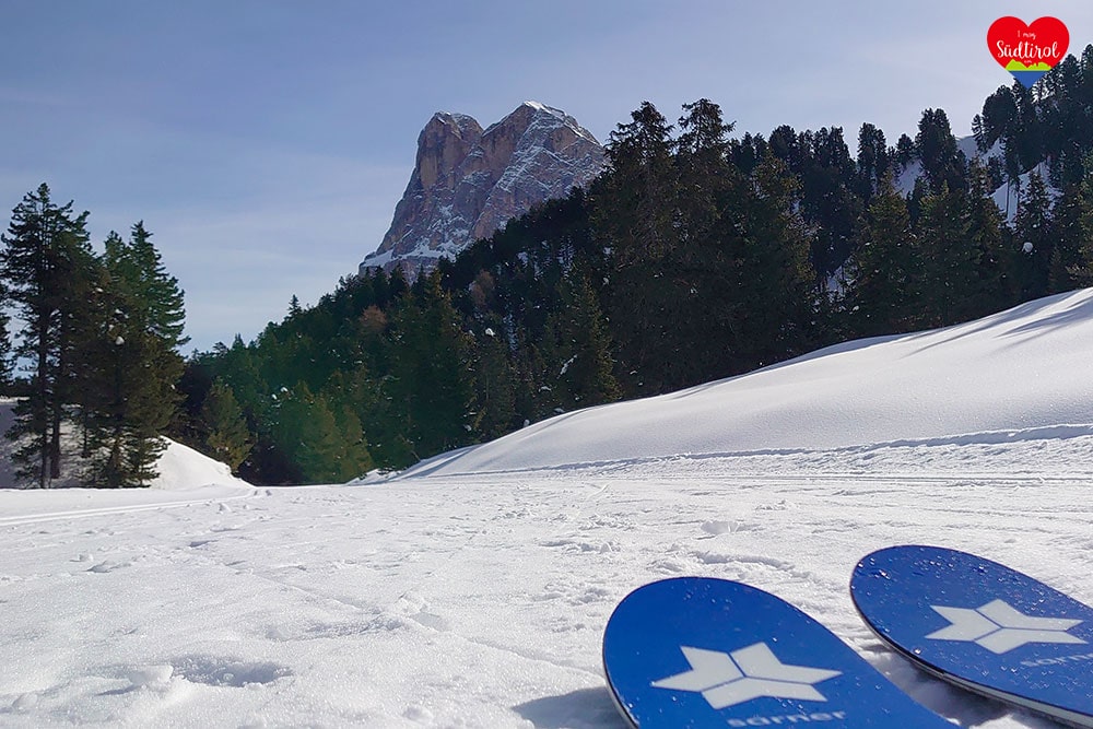 Nach der Stärkung zogen wir unsere Skier an und bereiteten uns auf die Rückfahrt vor. Los gings! Wir sausten über die gut gespurte Passstraße hinunter bis zur Kreuzung Lüsen. Dort mussten wir unsere Feller auflegen und wieder das Teilstück, mit leichtert Steigung, bis oberhalb der Halshütte marschieren. Ohne Feller sausten wir vorbei an der Halslhütte, durch den herrlichen Winterwald, zurück zum Ausgangspunkt.