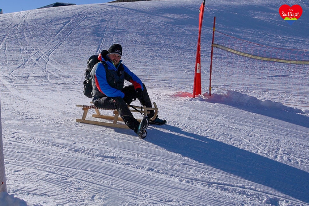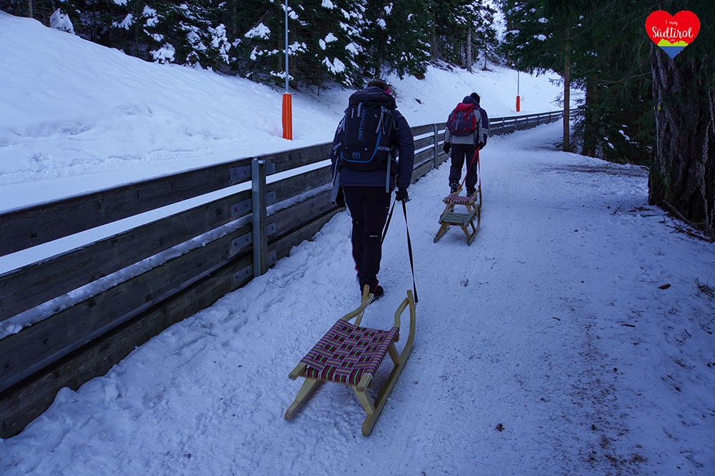 Rückwanderung zur Epircher Laneralm und Rodelparty nach Obereggen