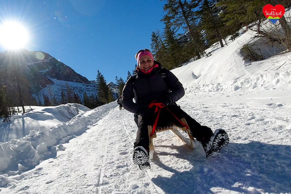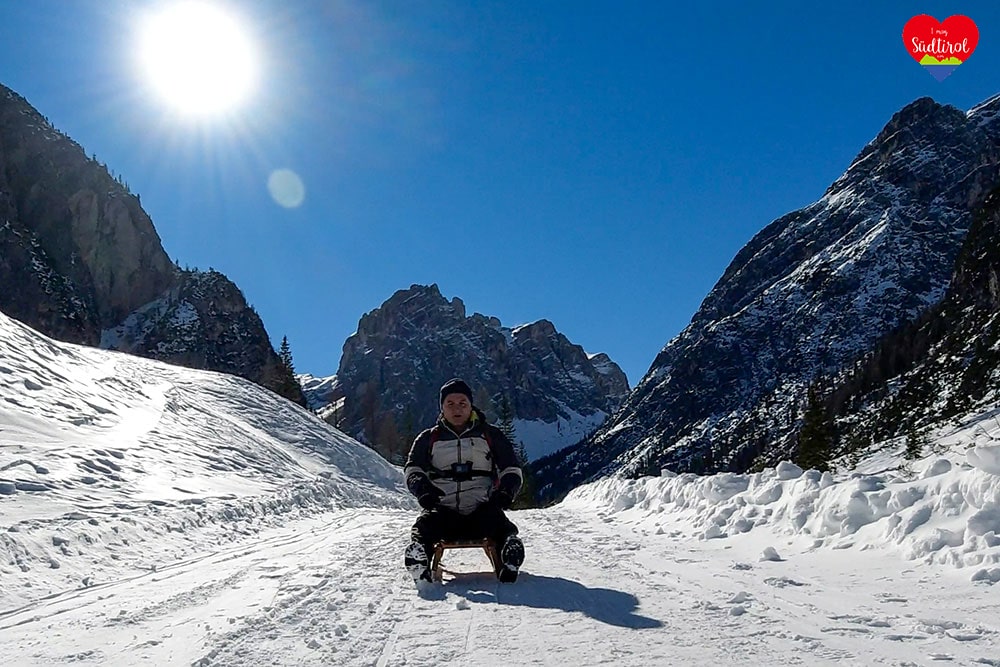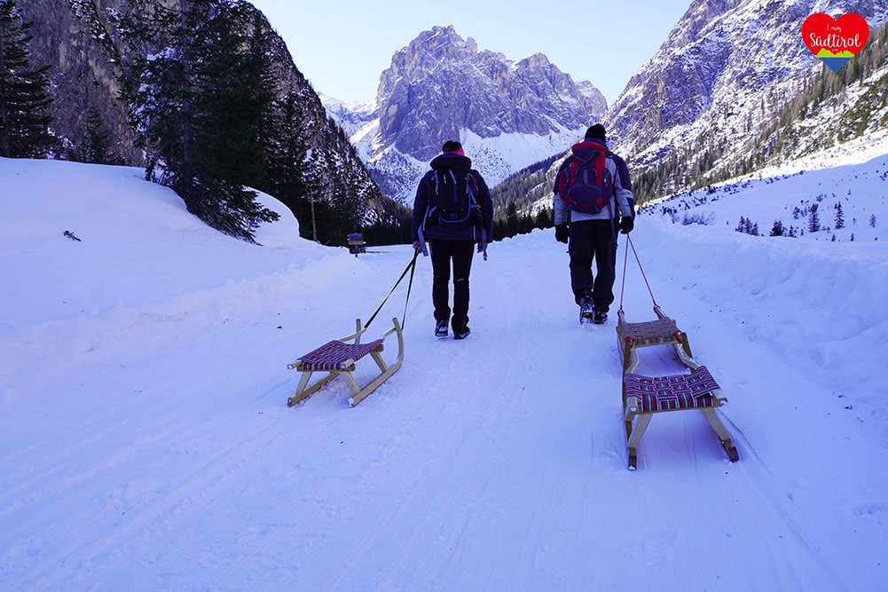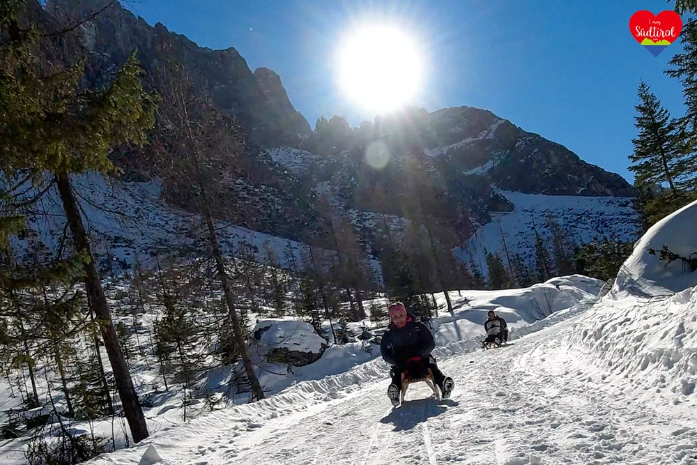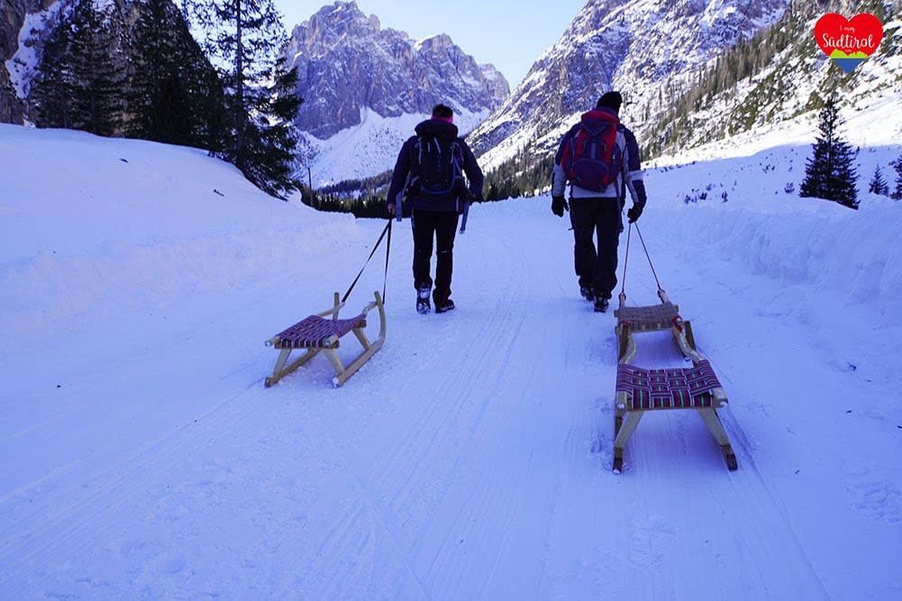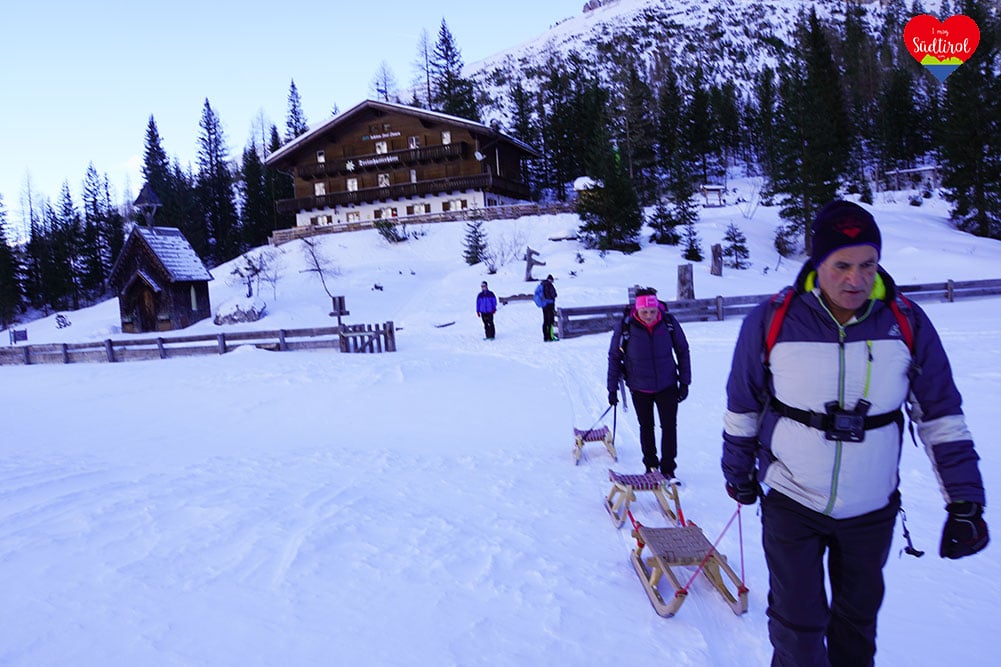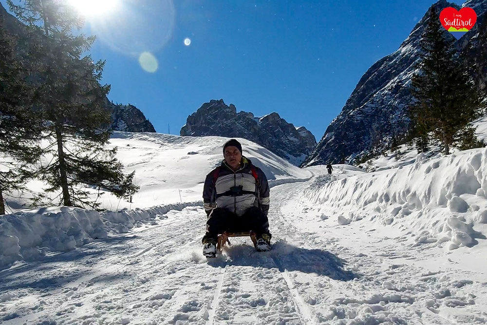 Ja, denn auf diese Hütte bei Sexten geht ein breiter Wanderweg, auf dem man zurückrodeln kann.