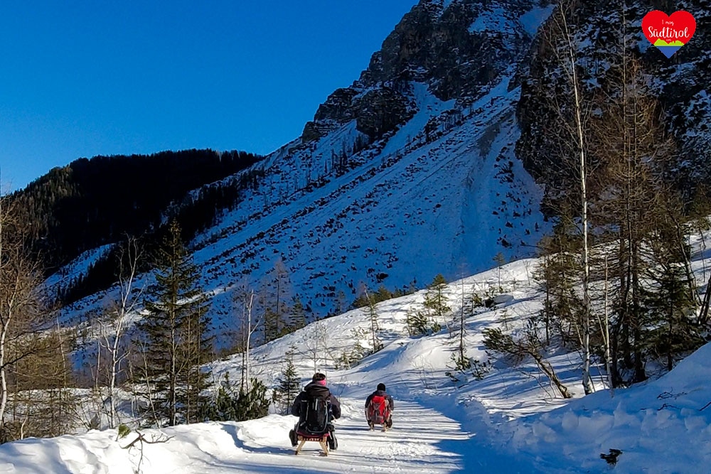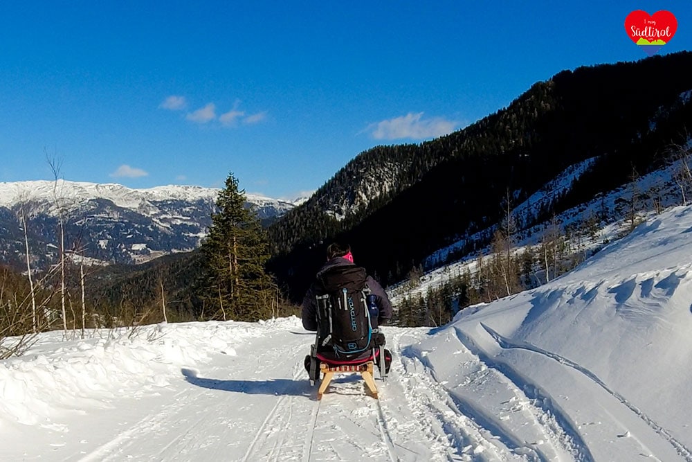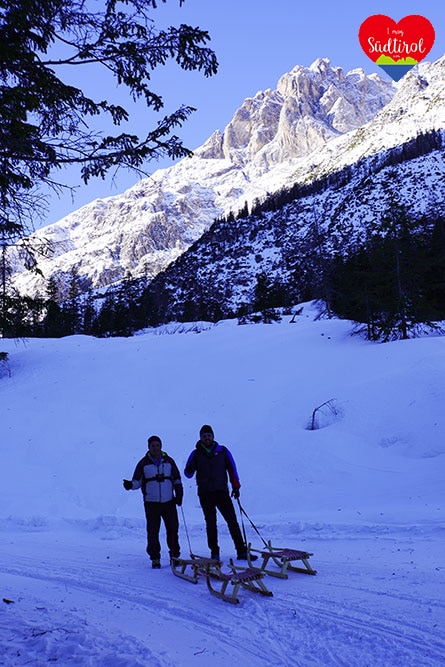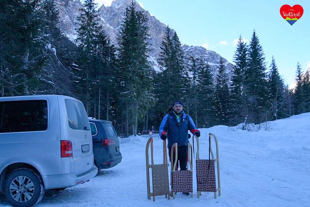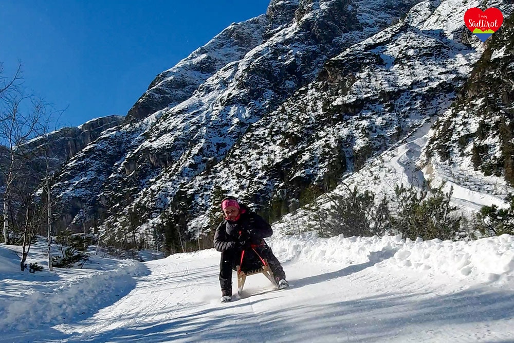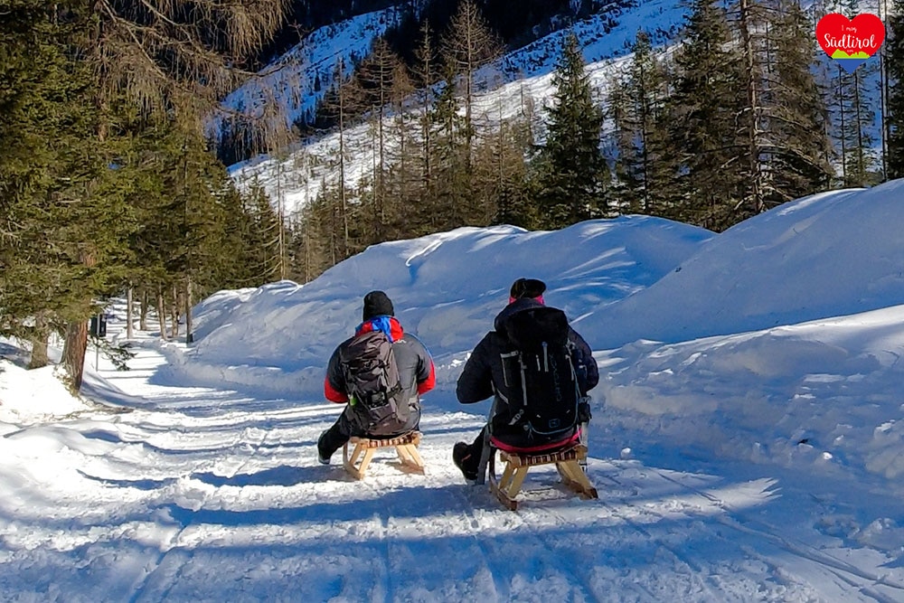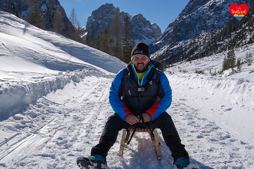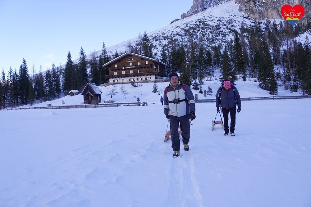 Ja, denn auf diese Hütte bei Sexten geht ein breiter Wanderweg, auf dem man zurückrodeln kann.