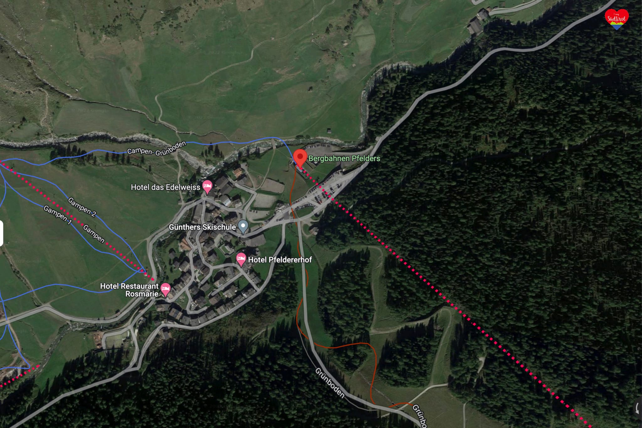 Anfahrt zum Parkplatz Bergbahnen Pfelders