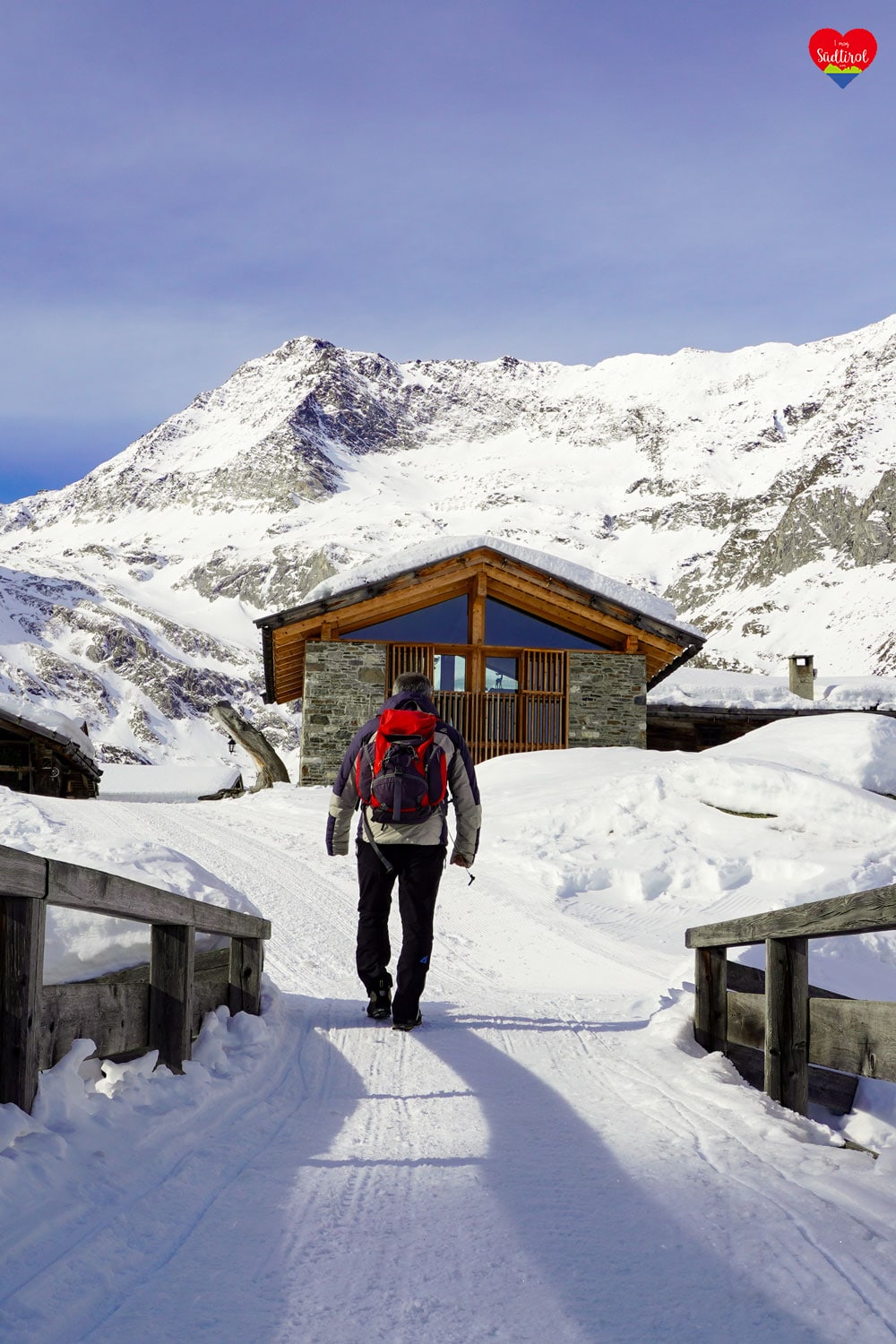 Dieses Gasthaus liegt auf 1782m im Naturpark der Texelgruppe. Von Pfelders in Passeier aus, erreicht man sie in ca45 Min. Hier trifft man auf typisches Südtiroler Essen, auf eine traumhafte Winterkulisse und meist ein traumhaftes Wetter.-