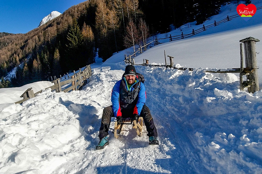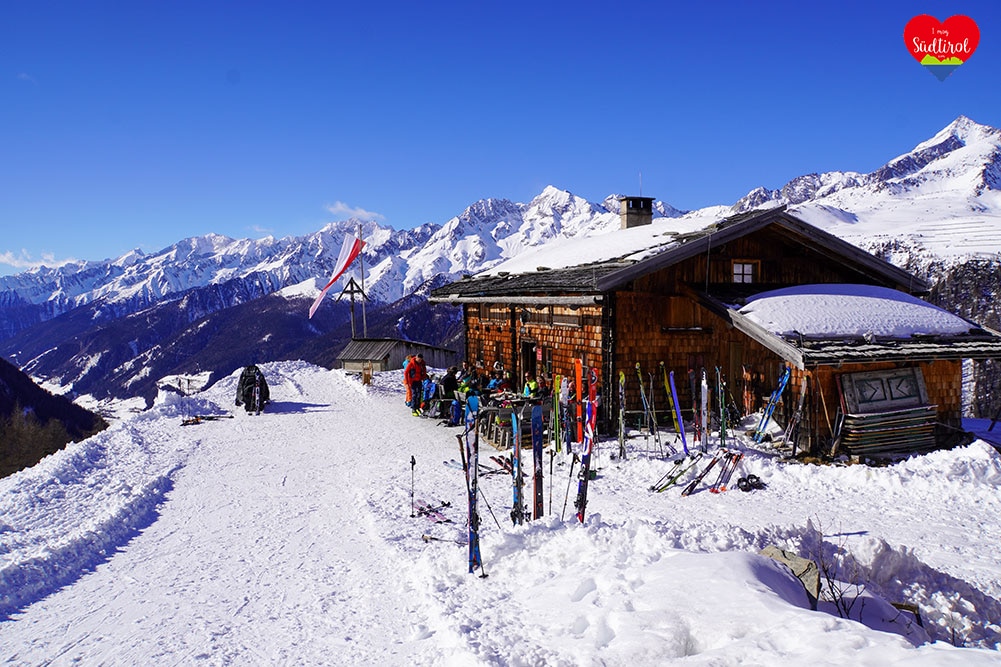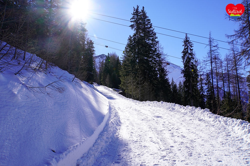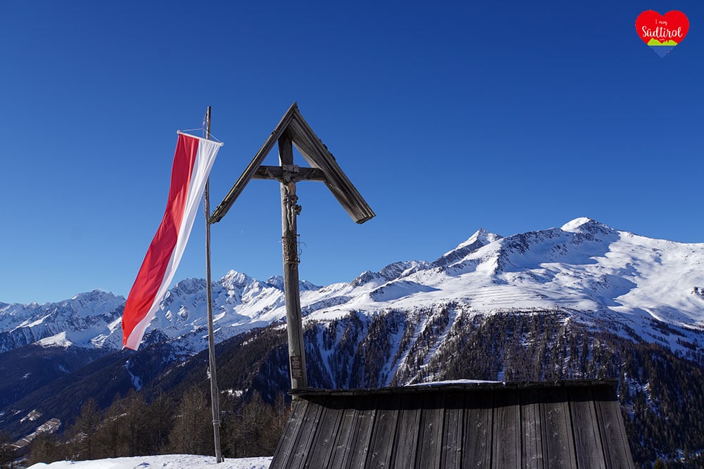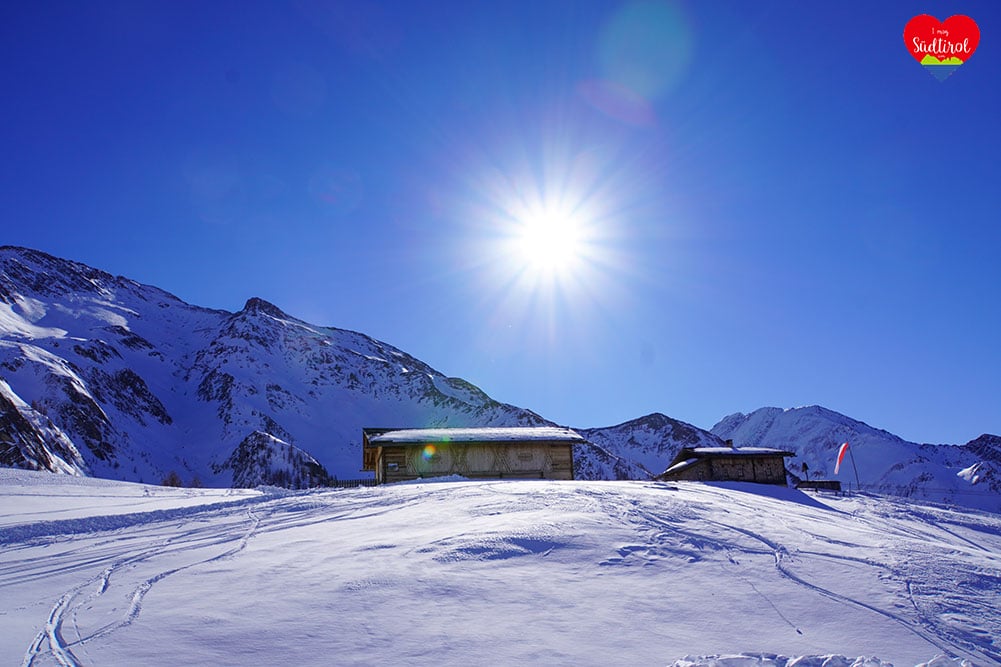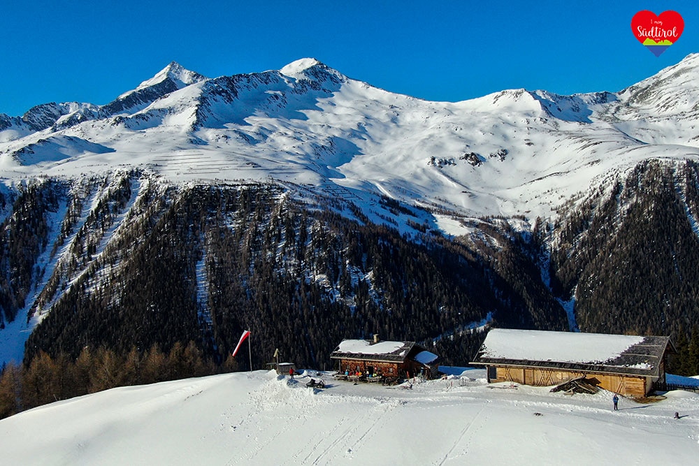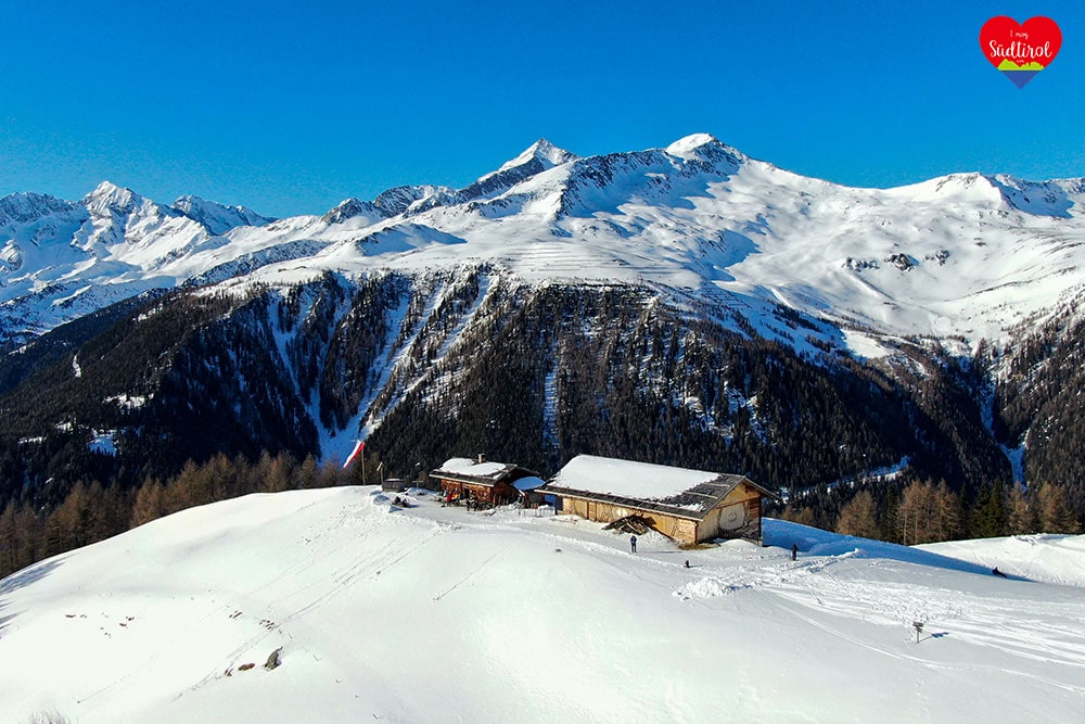 Eine leichtere Winterwanderung ist die 3,2km lange Tour zur Knutten Alm bei Rein in Taufers. Mit 220hm und einer Gehzeit ca. 1h bis zur Hütte, ist diese Wanderung auch für Familien geeignet. (Gesamt 6,4km, Geheiz 2h)